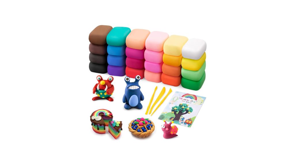 Unleash your inner artist or inspire a young creator with the Air Dry Modeling Clay Kit – 24 Colors with