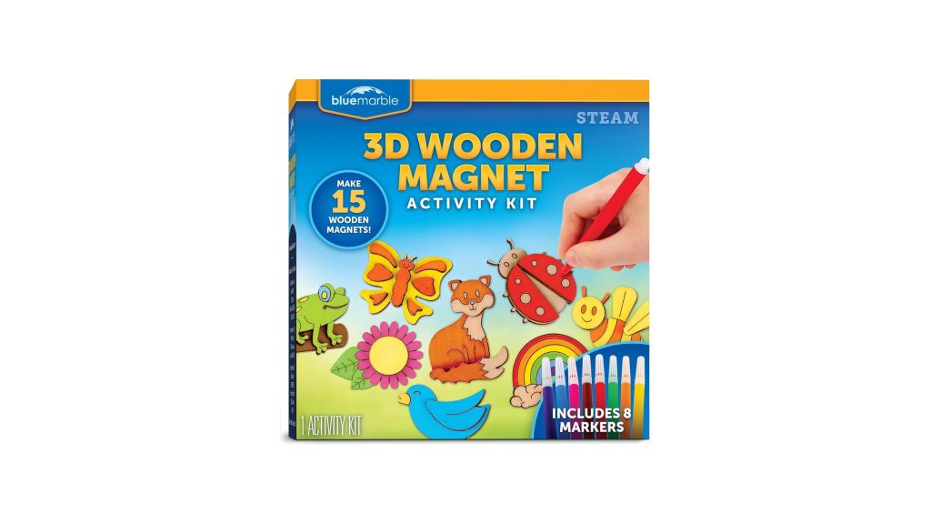 Unleash a world of artistic expression and magnetic fun with the Blue Marble Wooden Magnet Craft Kit – Create &