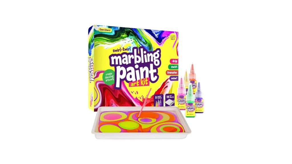 Unleash a world of vibrant colors and swirling patterns with the Dan&Darci Marbling Paint Art Kit for Kids. This innovative