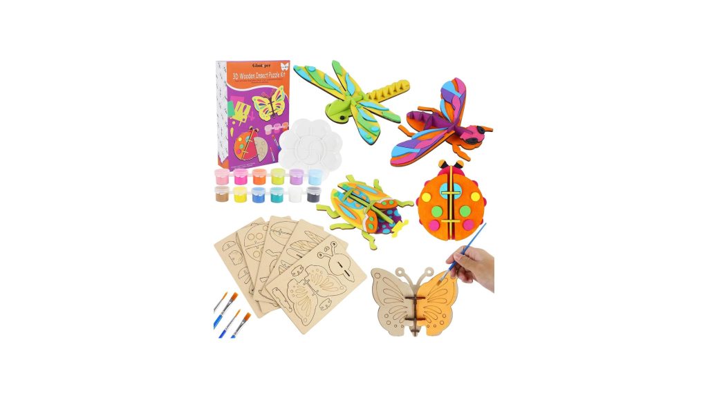 Unleash your child’s inner artist and entomologist with the Glintoper Wooden Insect Crafts Painting Kit for Kids. This engaging 5-piece