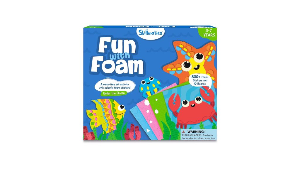 Unleash your child’s inner artist and dive into a world of underwater wonder with the Skillmatics Foam Sticker Art Activity