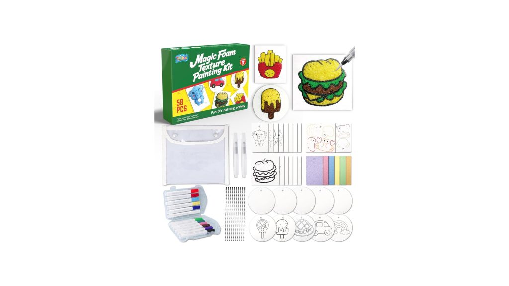 Unleash your child’s inner artist with the Tibibee 58 Pcs Magic Foam Texture Painting Kit, Magic Puffy Paint Kit–32 Pcs