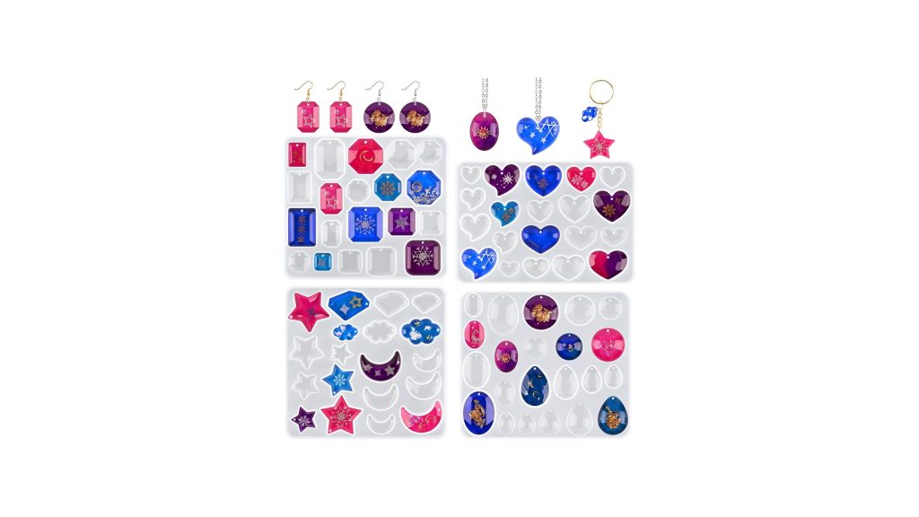 Ready to elevate your DIY jewelry game? The Actvty Earring Resin Mold with Holes, 4 Pieces Silicone Pendant Epoxy Molds