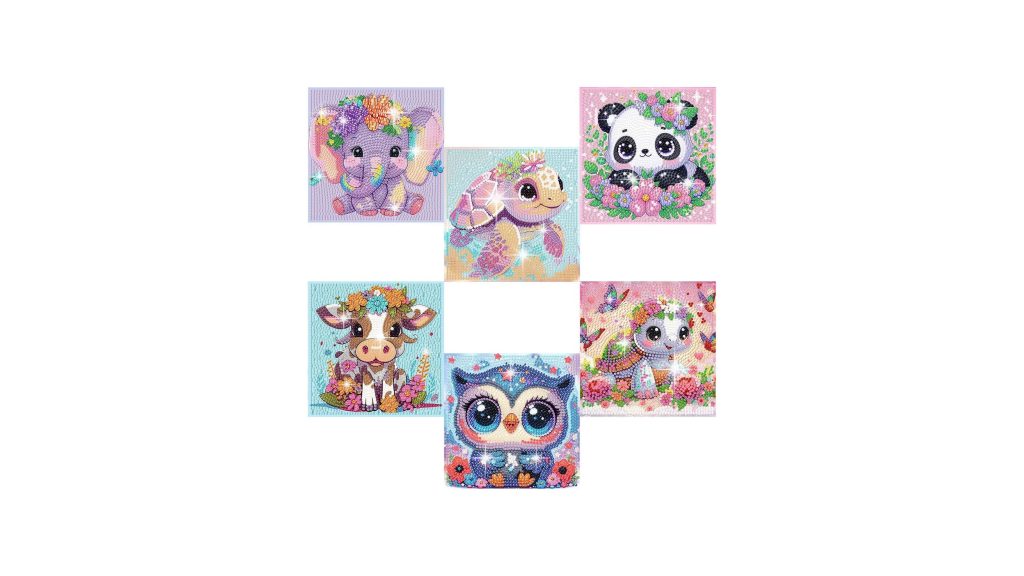 Unleash your child’s inner artist with the delightful Acelii 6 Pack 5D Cartoon Diamond Painting Kits for Kids Beginners, a